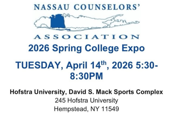 National Counselors’ Association Presents 2026 Spring College Expo Families and students are invited to attend the Nassau Counselors’ Association Spring College Expo 2026—a valuable opportunity to explore college options and plan for the future. This annual event brings together a wide range of colleges, universities, and educational programs, giving attendees the chance to meet admissions representatives, ask questions, and gather important information on academics, campus life, and the application process. Whether you’re just starting your college search or narrowing down your choices, the expo offers helpful insights for every stage. Parents and students alike will benefit from this informative and engaging experience designed to make the college planning journey clearer, more accessible, and less overwhelming. Click here to read the entire article