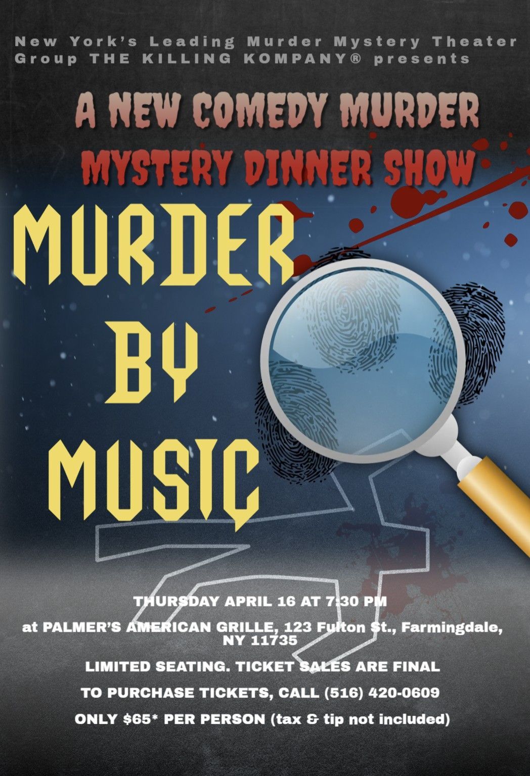 A MURDER BY MUSIC, a comedy murder mystery dinner show- 4/16/2026 7:30pm Get ready for an evening of mystery, music, and laughter at Murder by Music, a comedy murder mystery dinner show happening Thursday, April 16 at 7:30 PM at Palmer's American Grille. Enjoy a delicious dinner while becoming part of the action as a thrilling (and hilarious) whodunit unfolds around you. Packed with live entertainment, interactive fun, and plenty of twists, this unique experience is perfect for a night out with friends, family, or a date night with a twist. Tickets are $65 per person. For reservations or more information, call (516) 420-0609. For more information click here